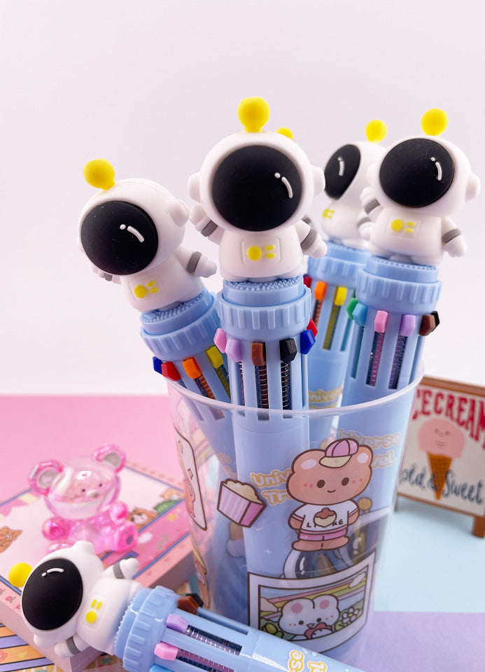 STYLO KAWAII 10 COULEURS ASTRONAUTE