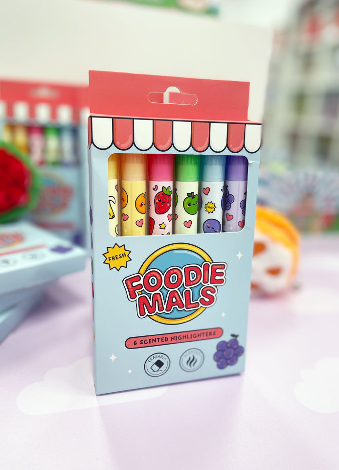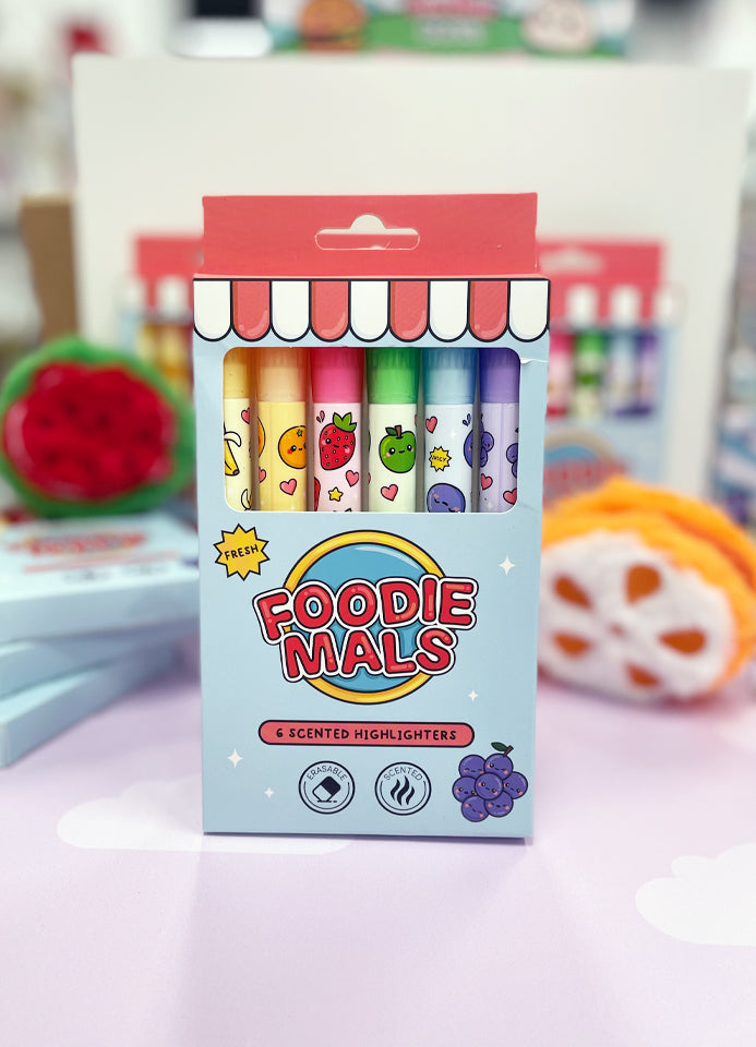 Découvrez ce lot de 6 surligneurs effaçables de chez FoodieMals, parfumés et ludiques !